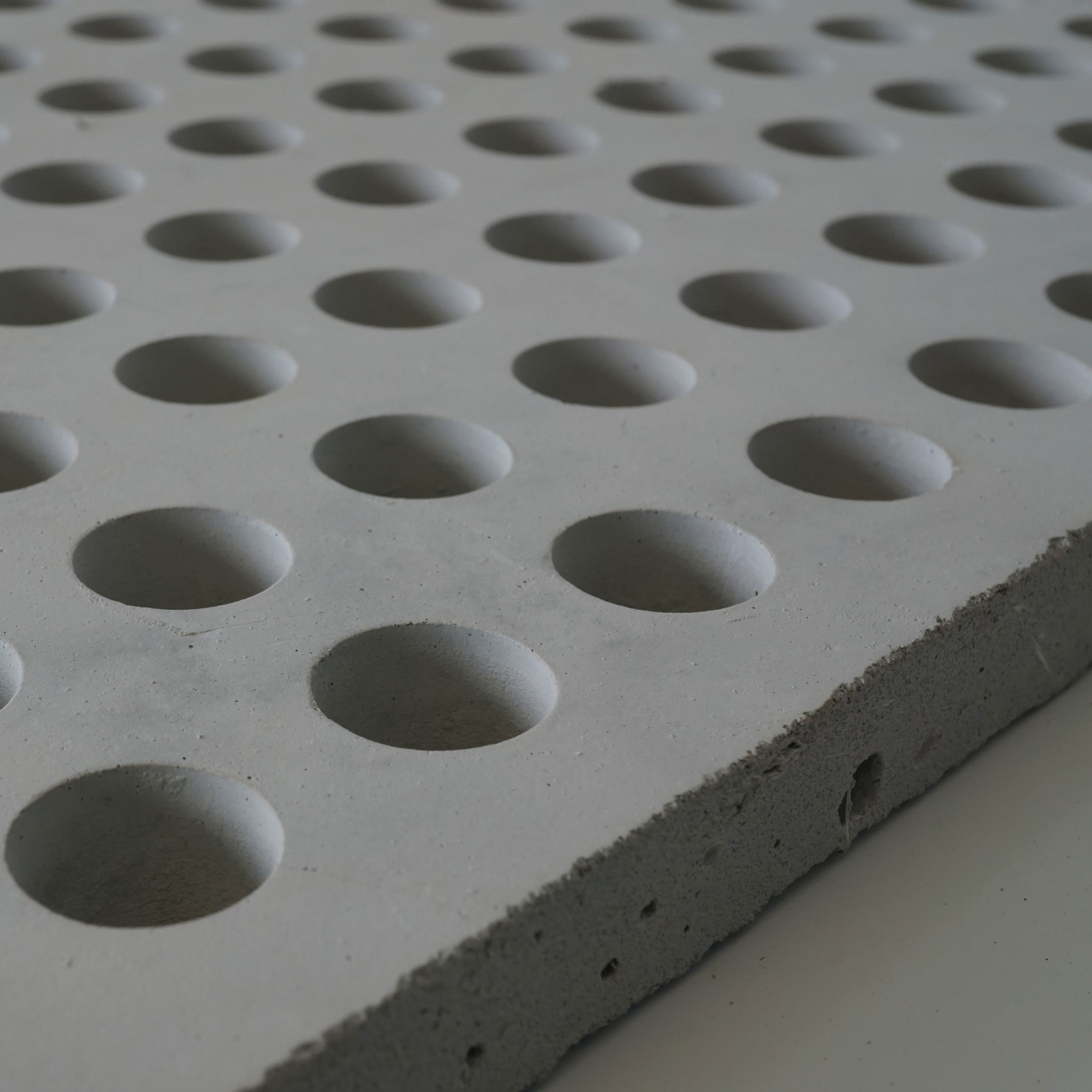 Polycon Glasfaserbeton kann perforiert ausgeführt werden. Dabei können z.b. Lüftungs- oder Lichtschlitze bereits in der Produktion ausgeführt werden. Der Perforierungsgrad ist abhängig von Form und Abmessung und wird projektbezogen bewertet.| Farbe | S02 Beton Grau (concrete grey) |