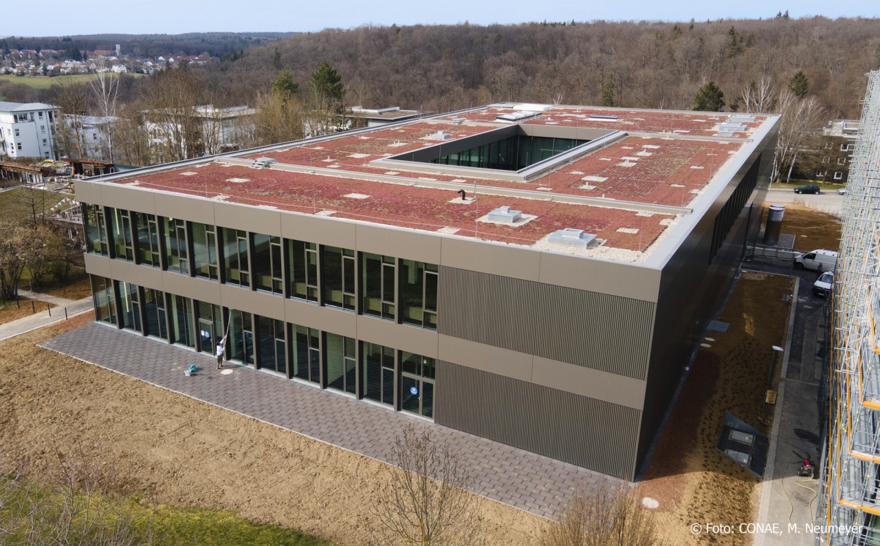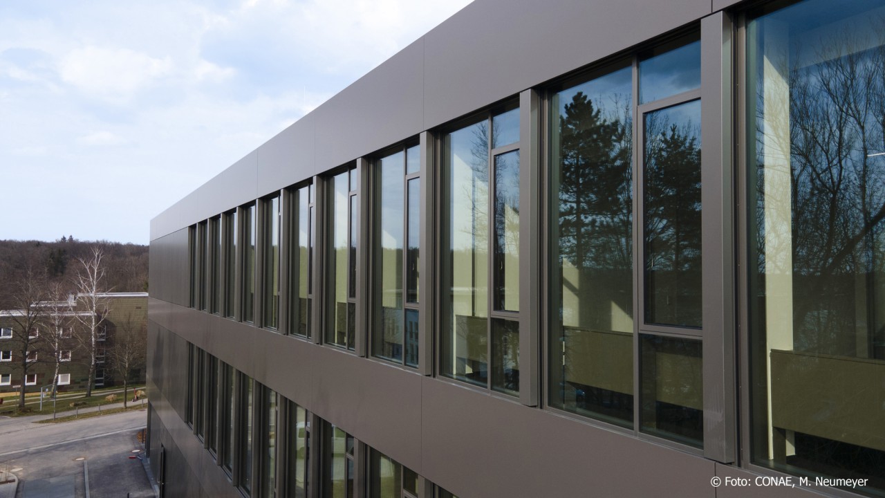 Das neue Zentrum für Angewandte Quantentechnologie in Stuttgart vereint Experten aus Quantenphysik und Photonik mit Ingenieuren, um die angewandte Quantentechnologie – insbesondere im Bereich der Quantensensoren – weiterzuentwickeln. An der Fassade wurden bis September 2020 insgesamt rund 1.300 m² etalbond® FR Aluminium-Verbundplatten im Farbton RAL 7048 matt verbaut. Der spezielle Farbton wurde sorgfältig auf die übrigen Fassadenelemente abgestimmt. Besonders hervorzuheben ist die verdeckte Befestigung der bis zu 1.500 x 4.800 mm großen Platten.