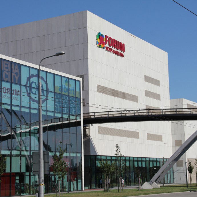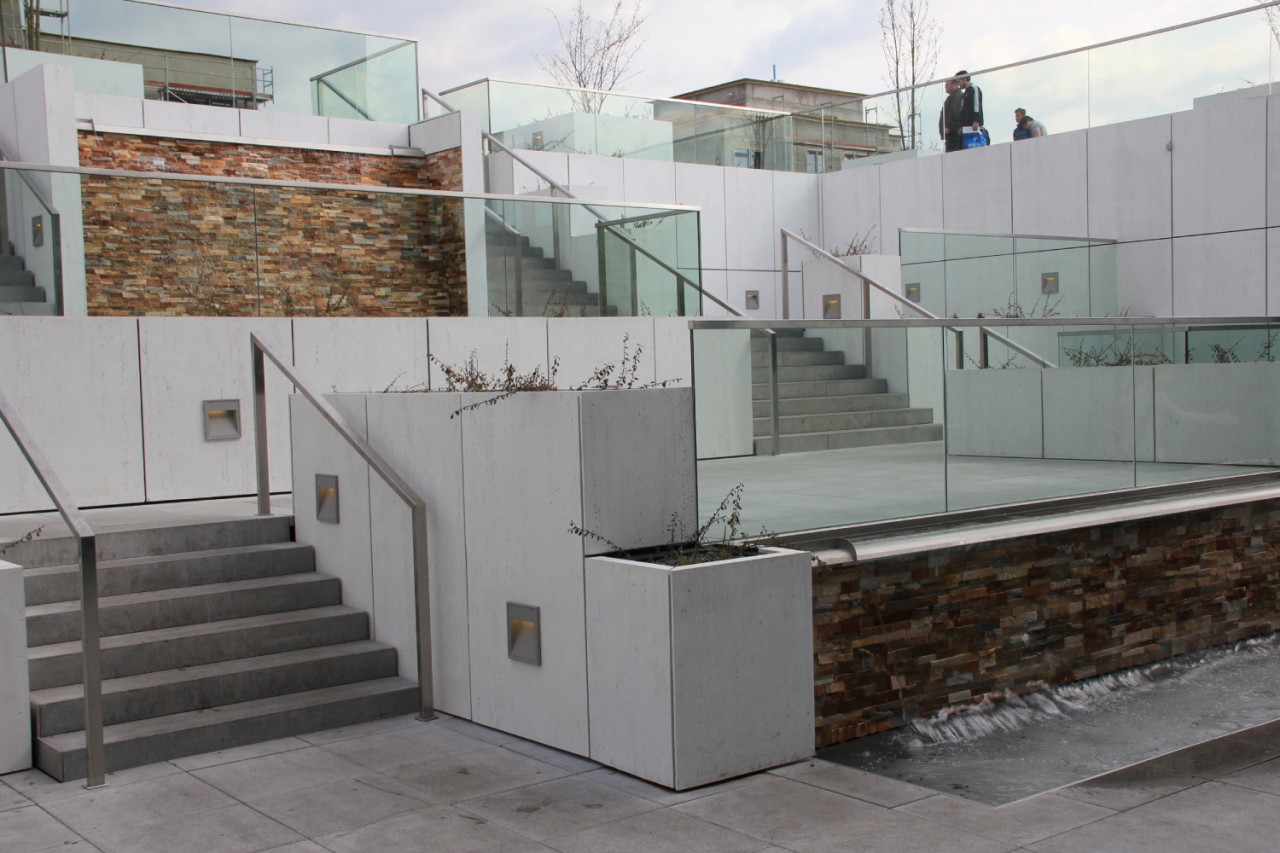 Das neue Einkaufszentrum „Forum Nova Karolina“ in Ostrau / CZ wurde 2012 eröffnet. Für die vorgehängte hinterlüftete Fassade sollte ursprünglich Travertin Stein eingesetzt werden. Dadurch war man allerdings in den Abmessungen zur Ausführung des Designs eingeschränkt. Die Lösung fand man in Polycon Glasfaserbeton, da man durch Matrizen die Optik und Struktur eines Travertins nachstellen kann und Abmessungen nach Wunsch des Architekten realisieren. Insgesamt sind ca. 17.500 m² Polycon in der Dicke 16 mm installiert. | Architekt: Heinrich Böll