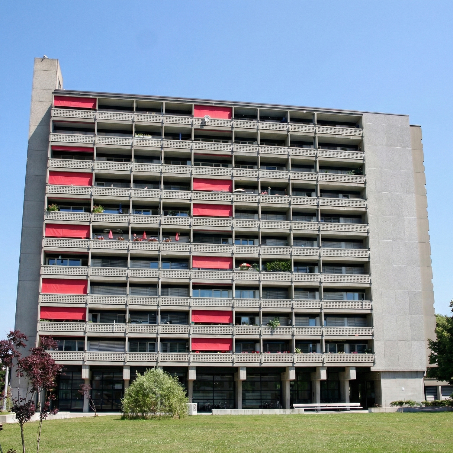 Das Wohnhochhaus in Sackzelg / Zürich in der Schweiz wurde 2015 saniert. Da dieses Gebäude unter Denkmalschutz steht, musste die Optik der ursprünglichen Waschbetonfassade gem. Original als neue vorgehängte, hinterlüftete Fassade nachgebildet werden. Dies ist mit polycon Glasfaserbeton möglich, indem ein Abdruck der bestehenden Fassade genommen wurde und identisch als dünne 20 mm Dicke Glasfaserbeton Elemente produziert. Es wurden ingesamt ca. 750 m² polycon 3D Elemente und großformatige Platten geliefert.
