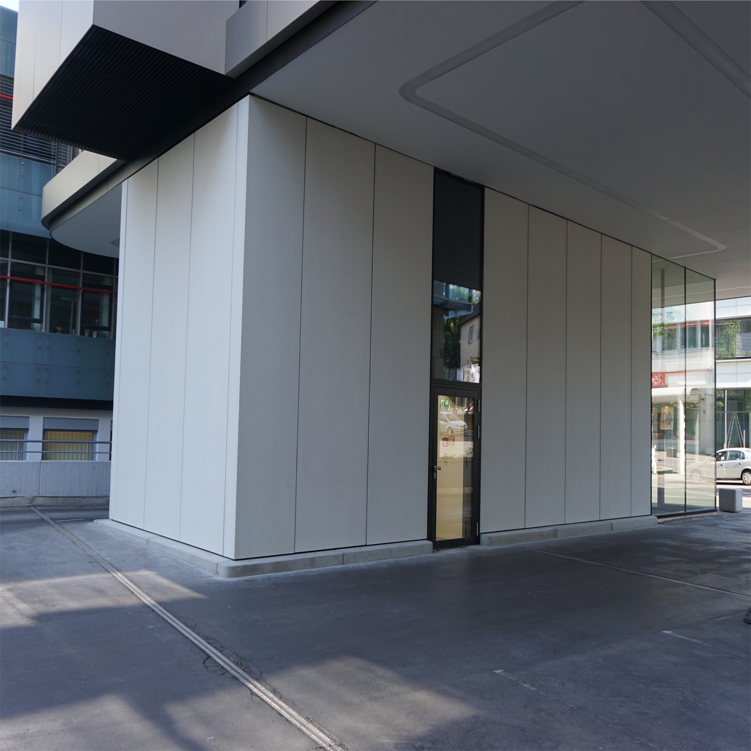Hier kamen hochwertige polycon Glasfaserbeton-Platten sowie 3D-Eckelemente mit einer beeindruckenden Höhe von zirka 4.900 mm zum Einsatz. Die Elemente in der Farbe S01 Weiß bestechen durch ihre edle, gestrahlte Oberfläche.