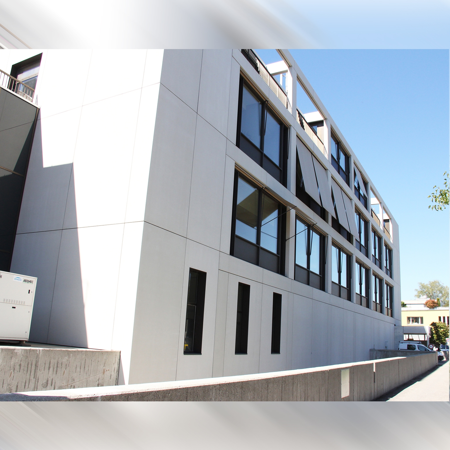 Die Fassade des Gebäude Bahnhofstrasse 16 in Langenthal wurde 2019 generalsaniert; Mit dem Ziel, die bis dahin sehr verschlossene und abweisende Fassade zugunsten von offenen, einladenden Fassadenelementen aus POLYCON Glasfaserbeton zu ersetzen. An der neuen Gebäudehülle sind insgesamt 2.100 m² polycon 3D – Elemente und Platten mit 16 mm Wandstärke montiert. Dafür wurden teils übergroße Elemente mit Dimension bis zu 4.800 x 2.800 mm inkl. vormontierter Unterkonstruktion produziert. Architekt: Ducksch Anliker Architekten AG